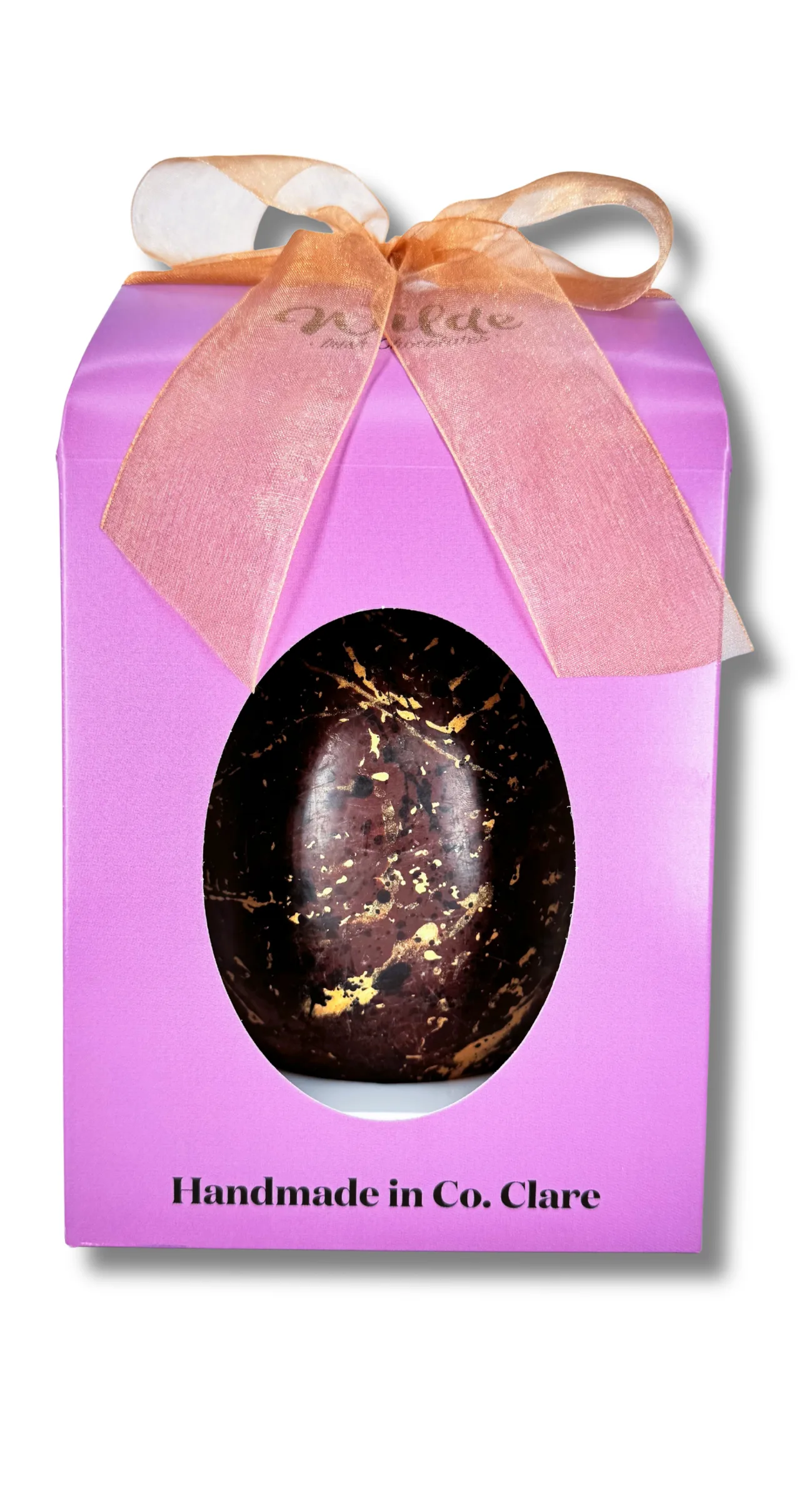 Indulge in our Irish artisan Easter eggs, proudly Handmade in Ireland. This handmade hand-painted decadent 500g dark chocolate egg has layers of  luscious Irish Sea Salted Caramel and dark chocolate layers of caramel crunch. This is one of our most popular flavours and makes this half kilo egg a rich, moreish Easter treat.