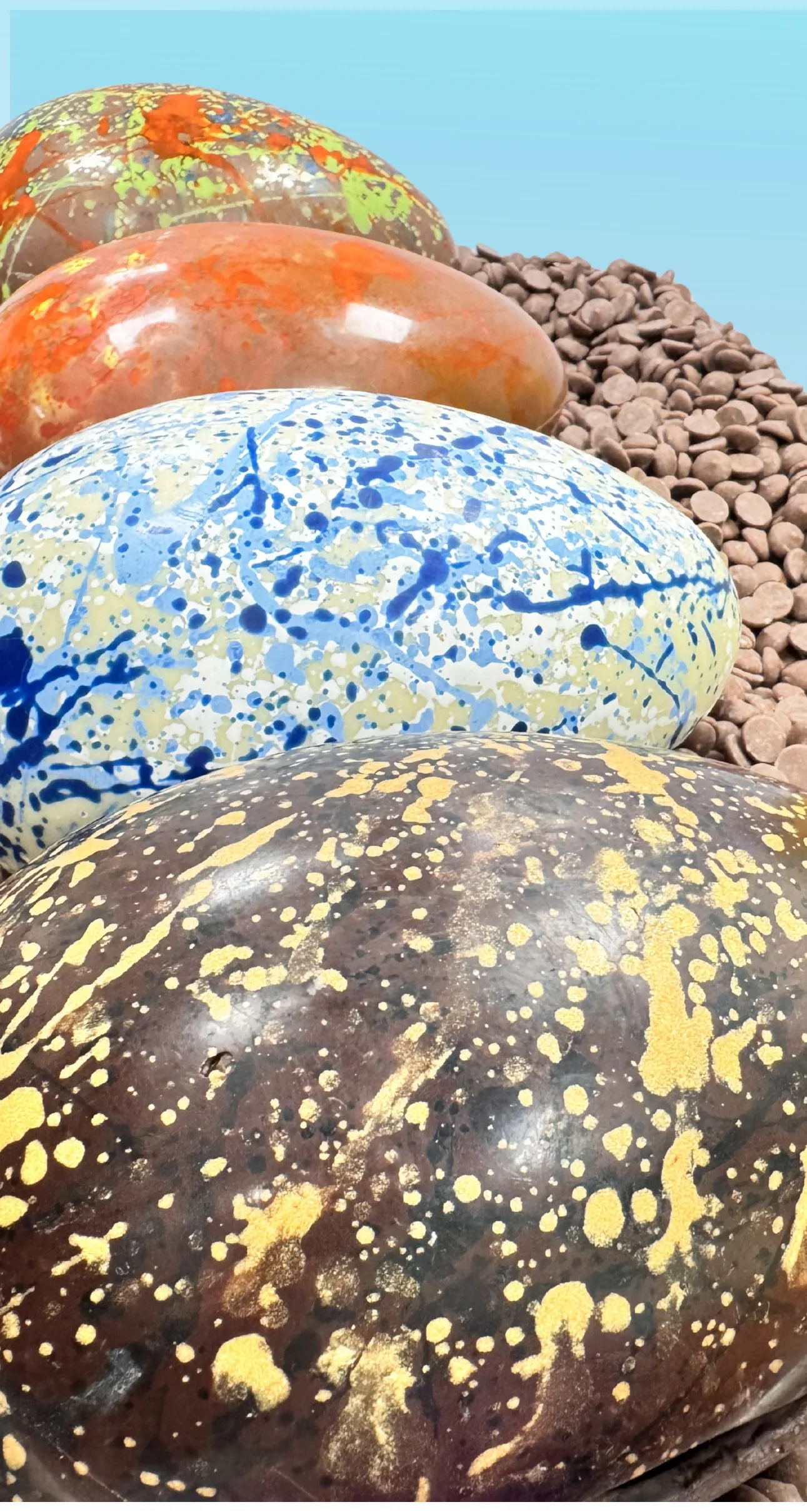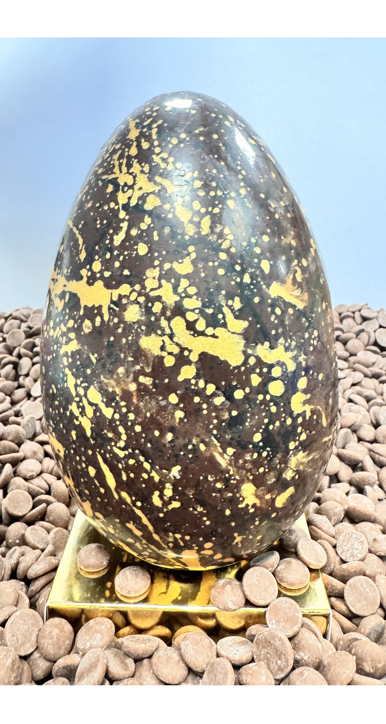 Looking for truly special Irish artisan Easter eggs this spring? Our Handmade hand-painted 500g dark chocolate egg  has layers of  smoothly luscious Sea Salted Caramel topped with layers of dark chocolate caramel crunch. With contrasting textures of squidgy caramel toppped with a crunchy caramel dark chocolate layer this decadently chunky half  kilo egg is sure to satisfy ! Its an extremely luxurious Easter treat, proudly Handmade in Ireland in small batches.